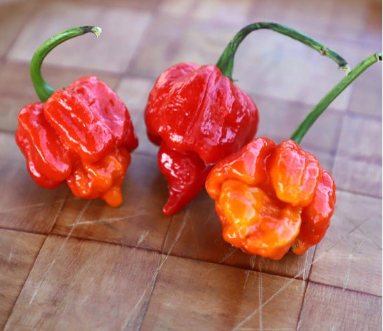 Trinidad Scorpion peppers are EXTREMELY HOT and should be handled with care.